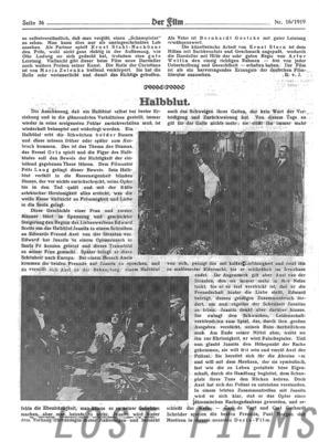 anon. (1919): Halbblut. In: Der Film, vol. 4, no. 16, 19 April 1919, p. 36