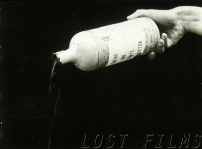 ... and pours ink into her son-in-law's (?) closed umbrella.